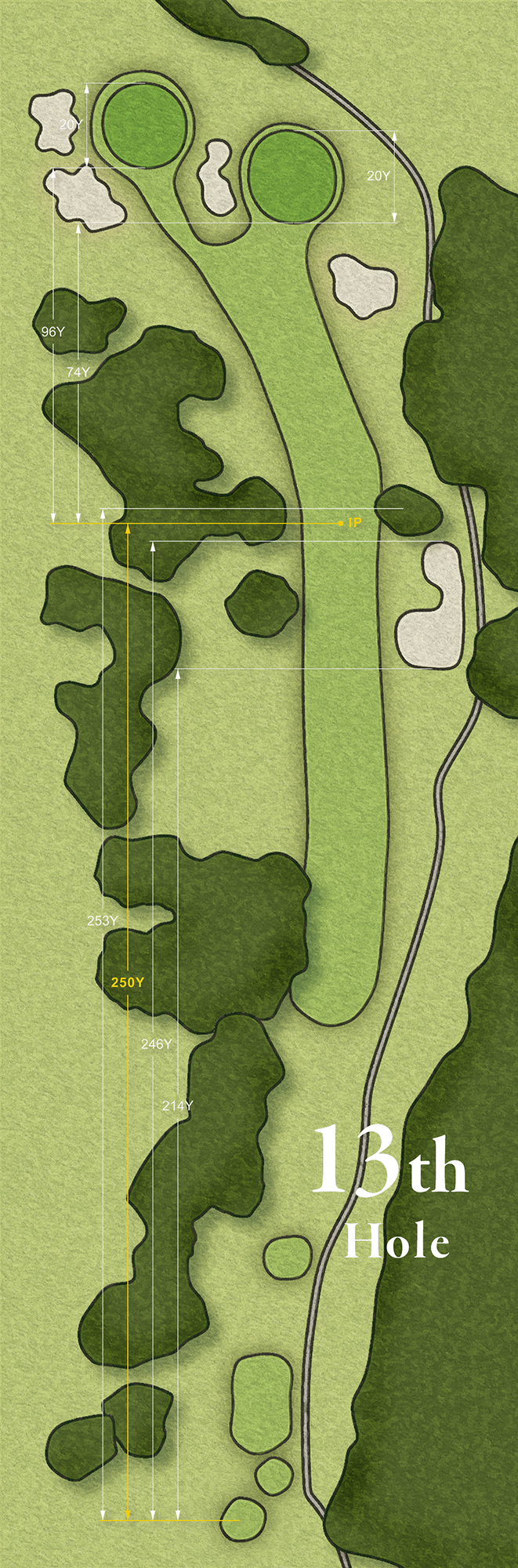 ティーショットは、フェアウェイセンターの松の木狙い。ショートカットは林に捕まりやすいので、なるべく避けた方がよい。