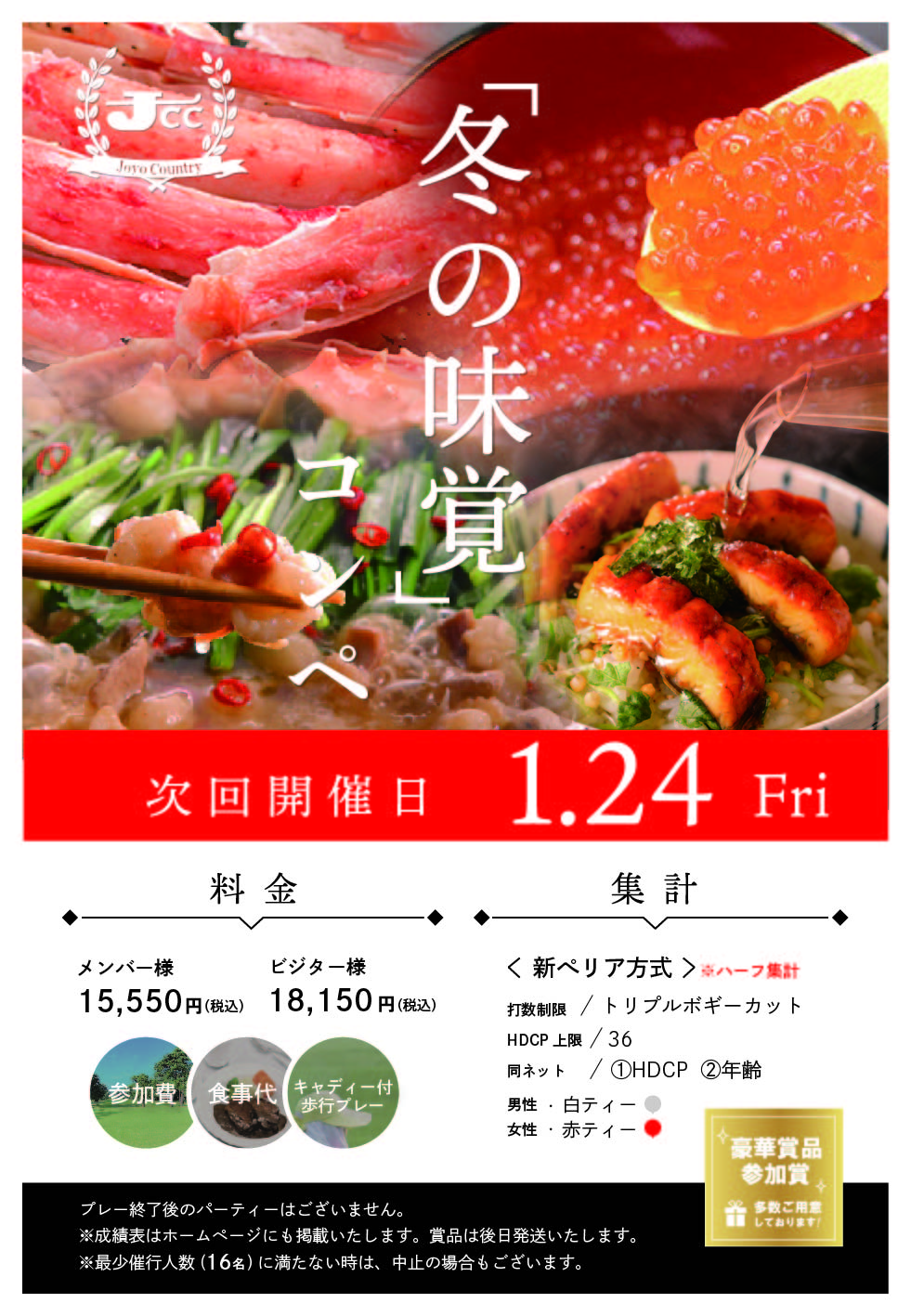 次回は、年明け1月24日にJccオープン冬の味覚コンペを開催予定です。